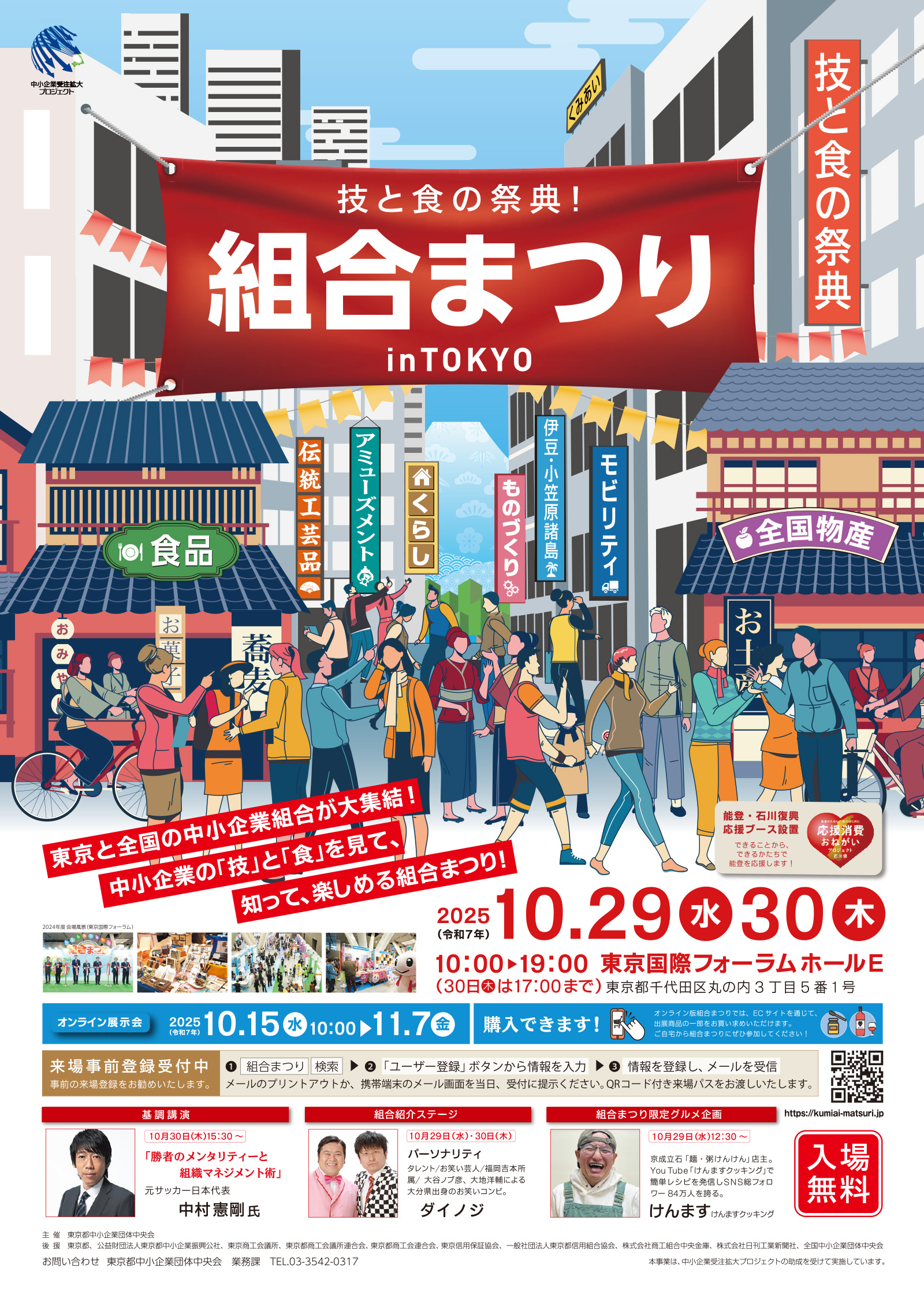 2025年10月29日(水)・30日(木)の2日間、「組合まつり in TOKYO ~技と食の祭典!~」に出展します。